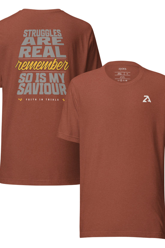 Message for Your Soul:Life’s struggles are undeniable, but so is the Savior who walks with you. This tee reminds you that trials don’t define you - your faith in Christ does.“I have told you these things, so that in me you may have peace. In this world you will have trouble. But take heart! I have overcome the world.” John 16:33
