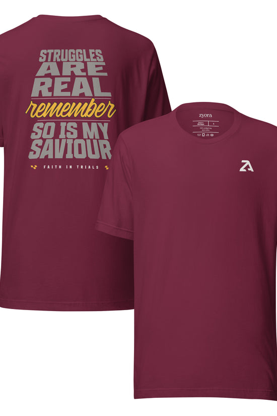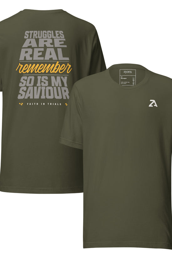 Message for Your Soul:Life’s struggles are undeniable, but so is the Savior who walks with you. This tee reminds you that trials don’t define you - your faith in Christ does.“I have told you these things, so that in me you may have peace. In this world you will have trouble. But take heart! I have overcome the world.” John 16:33